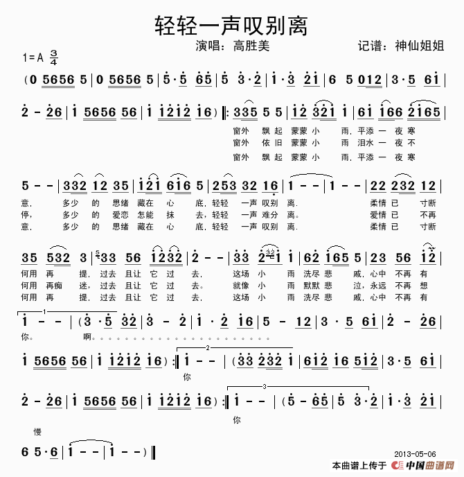 轻轻一声叹别离相关五线谱