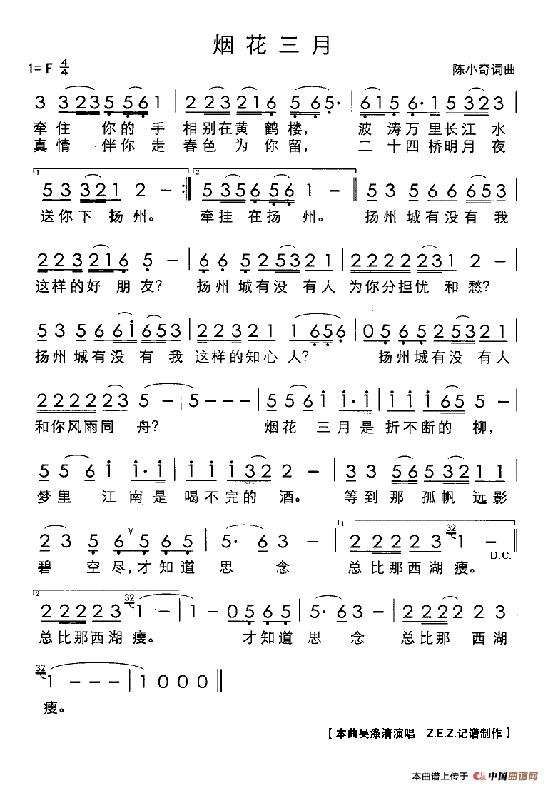 陈小奇曲谱推荐敬你一碗青稞酒马兰谣(陈小奇词曲)九九女儿红风生水起北部湾(陈小奇词 陈小奇曲)烟花三月下扬州涛声依旧寸寸河山寸寸金涛声依旧草原歌曲100首:高原红九九女儿红九寨之子我的好姐妹(电影《姐妹》片头曲)涛声依旧(老人适用)忆江南(陈小奇词曲)大哥,你好吗?白云深处(陈小奇词 陈小奇曲)涛声依旧高原红(根据容中尔甲演唱制谱)九九女儿红烟花三月(陈小奇词曲)