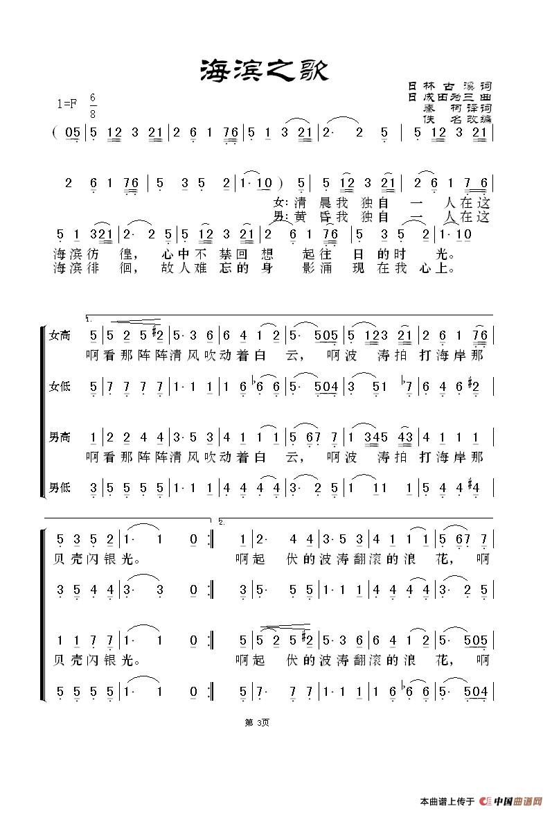 [日]海滨之歌(合唱、正谱)