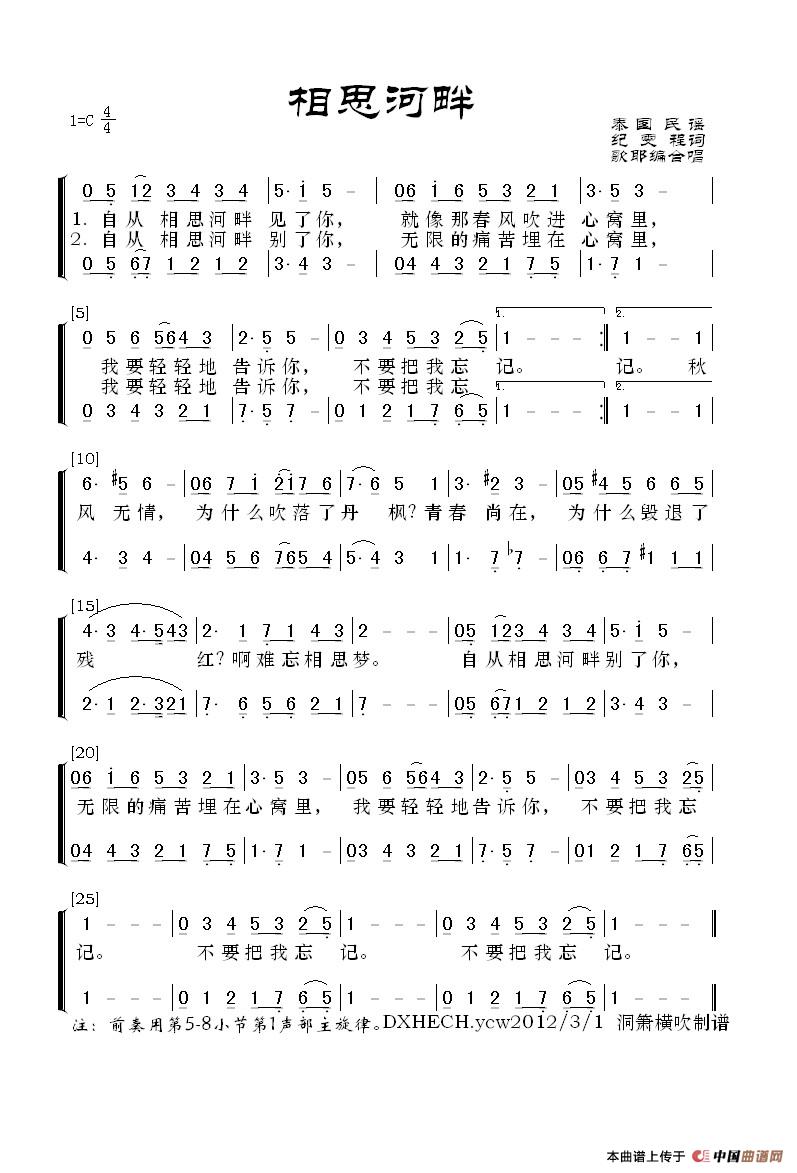 相思河畔(泰国民歌)相关五线谱