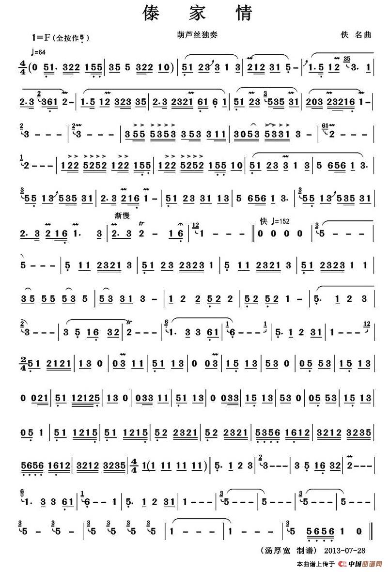 傣家情(葫芦丝独奏)相关五线谱