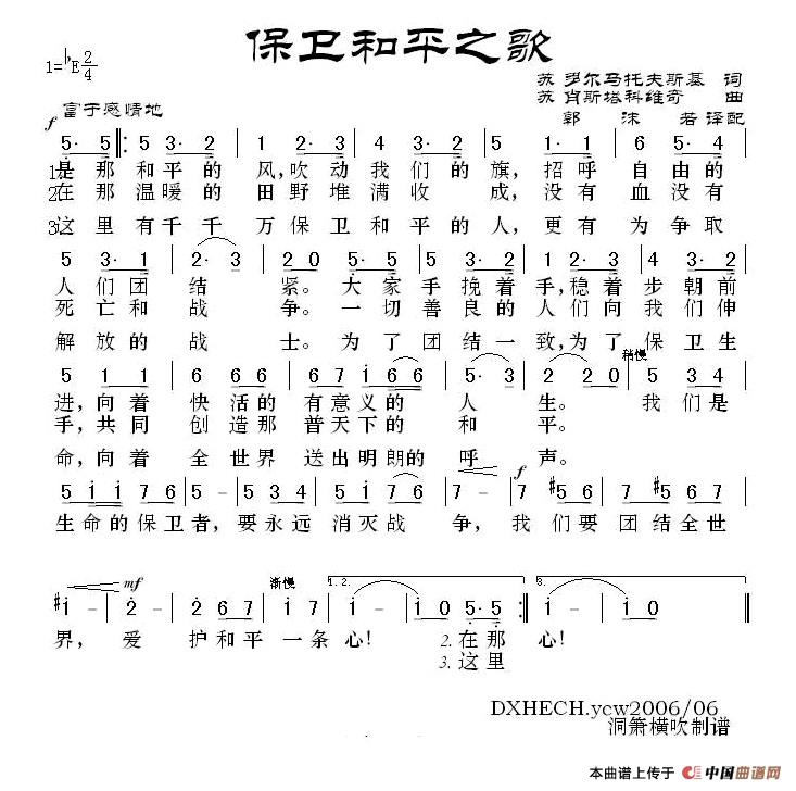 [苏] 保卫和平之歌相关五线谱