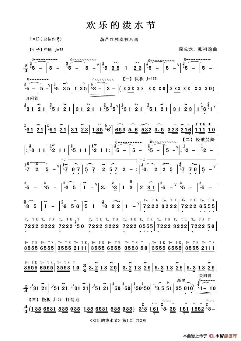 欢乐的泼水节(葫芦丝技巧谱)相关五线谱