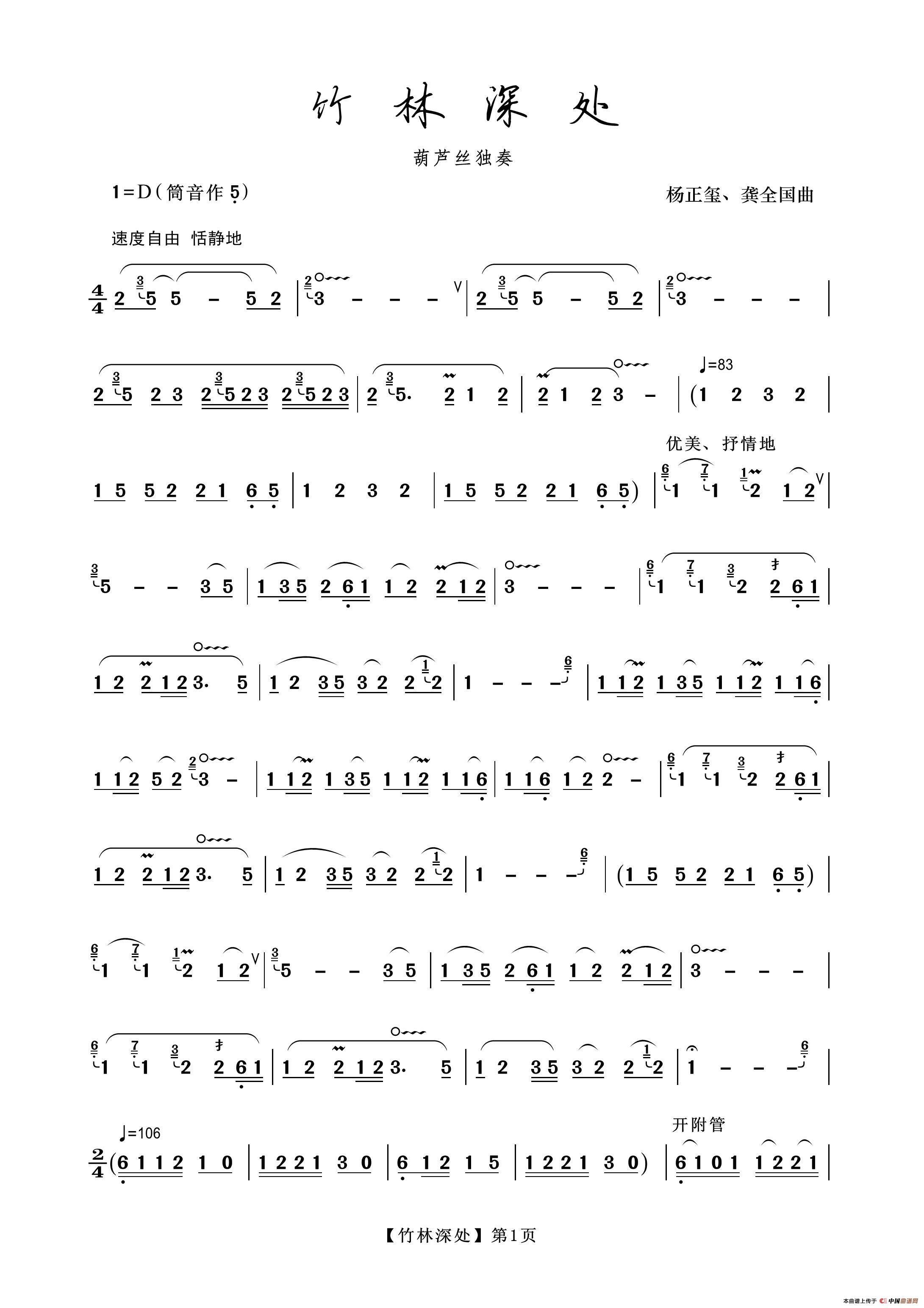 竹林深处简谱( 葫芦丝谱 李春华版)