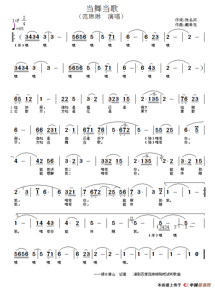 当舞当歌相关五线谱