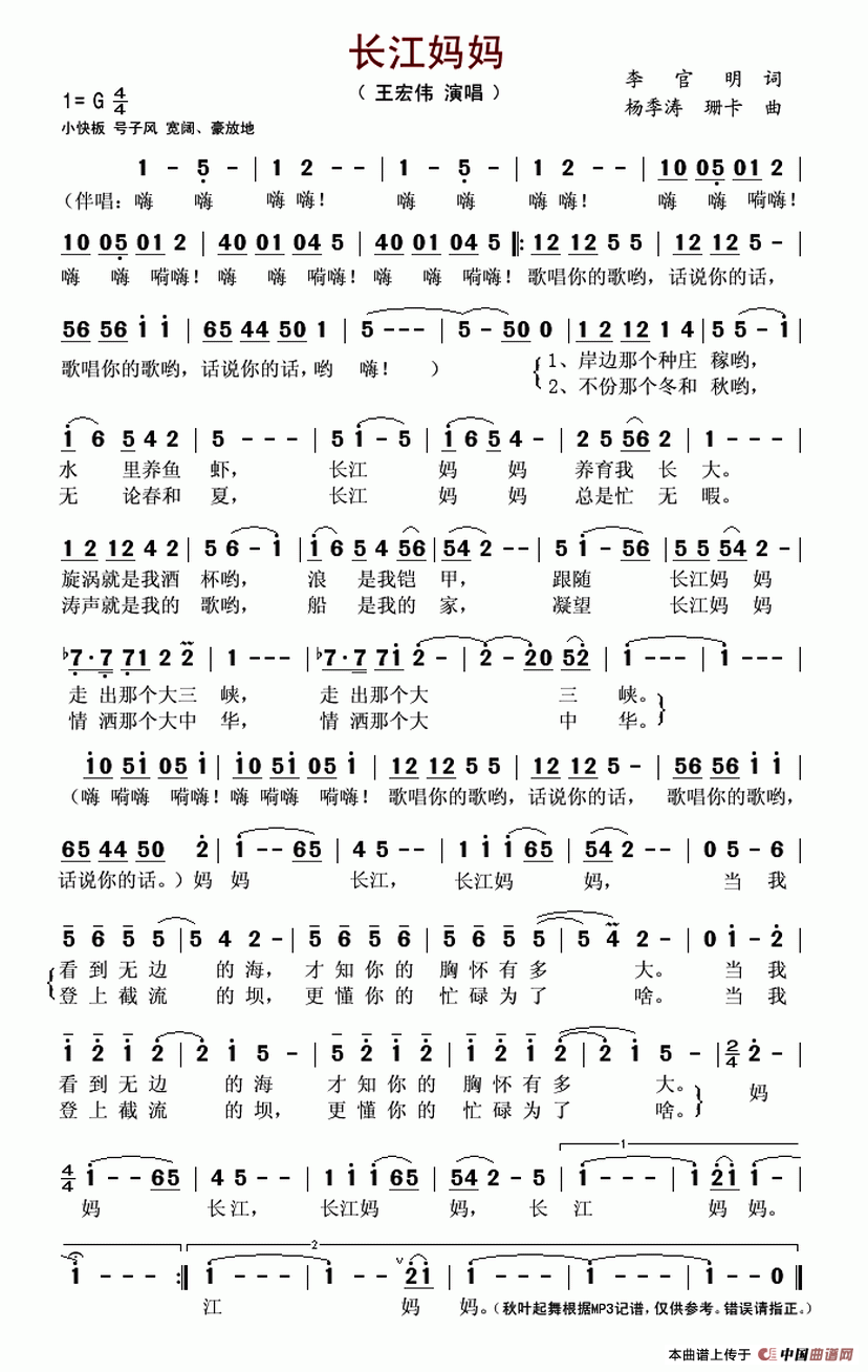 长江妈妈相关五线谱