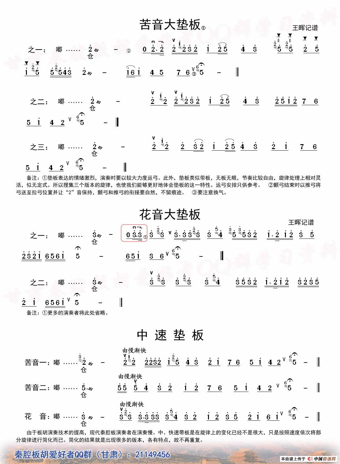 [秦腔]垫板板头(板胡)相关五线谱