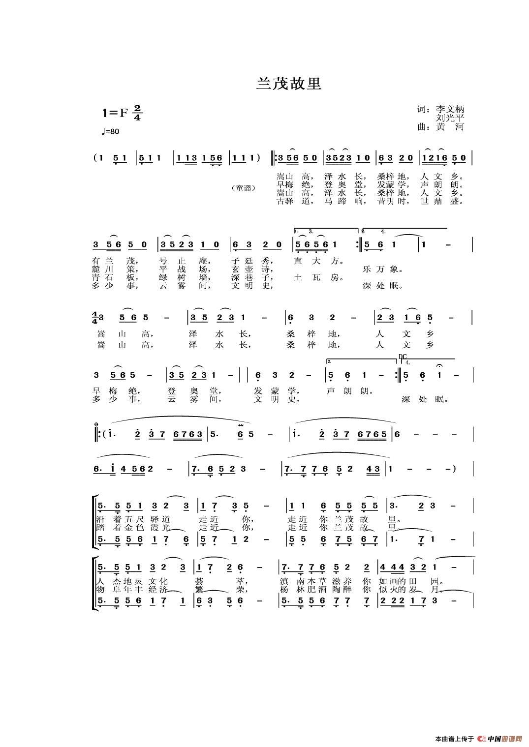 兰茂故里(合唱)相关五线谱