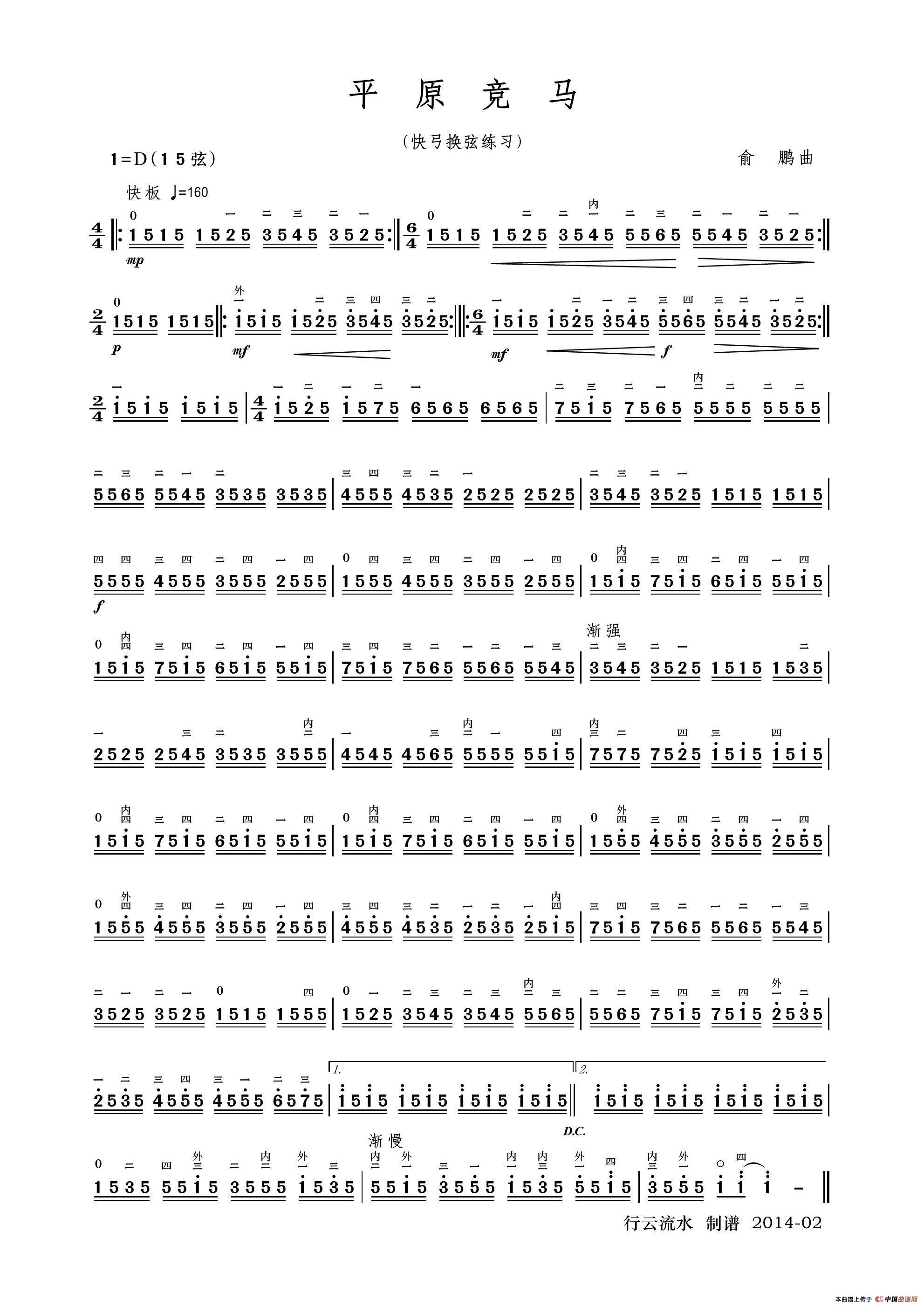平原竞马(二胡)相关五线谱