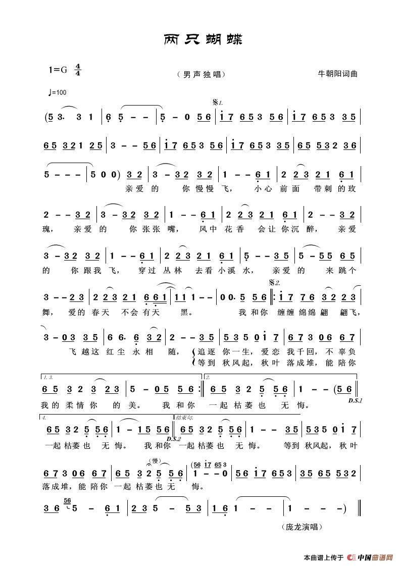 牛朝阳曲谱推荐七仙女昨夜我又梦见你(牛朝阳词曲)杯水情歌两只蝴蝶当雪花爱上梅花窗外人在世上飘(牛朝阳词曲)心醉(牛朝阳词曲)两只蝴蝶鸟巢(牛朝阳词曲)两只蝴蝶美人酒(电影《画皮新娘》主题曲)窗外(黑鸭子组合)当雪花爱上梅花两只蝴蝶(六孔陶笛谱)两只蝴蝶爱情乞丐杯水情歌眼睛(牛朝阳词曲)两只蝴蝶