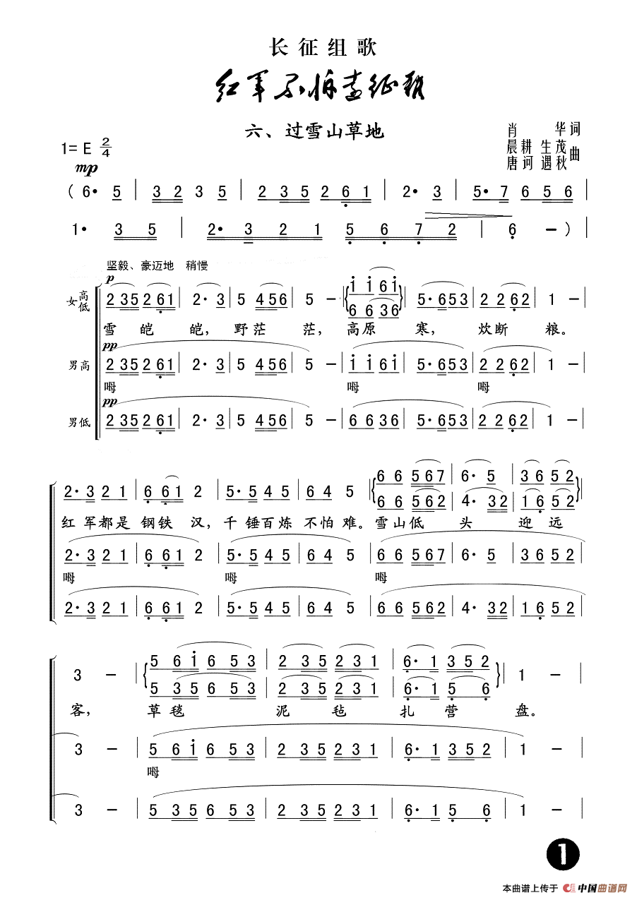 过雪山草地(长征组歌《红军不怕远征难》之六)相关五线谱