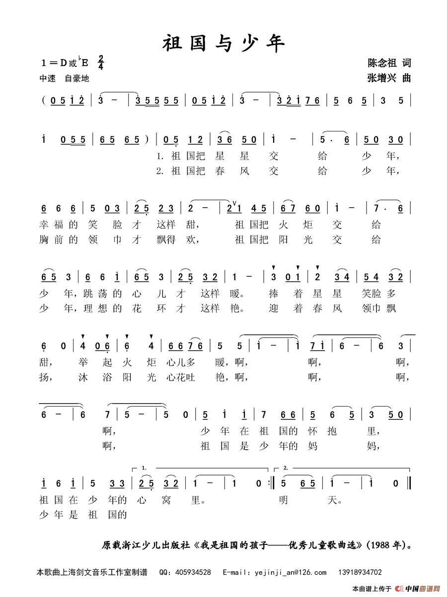 啊,我亲爱的祖国(陈福利词 钱诚曲)