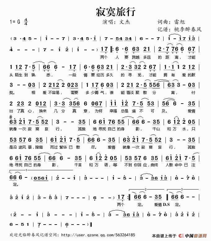 寂寞旅行相关五线谱