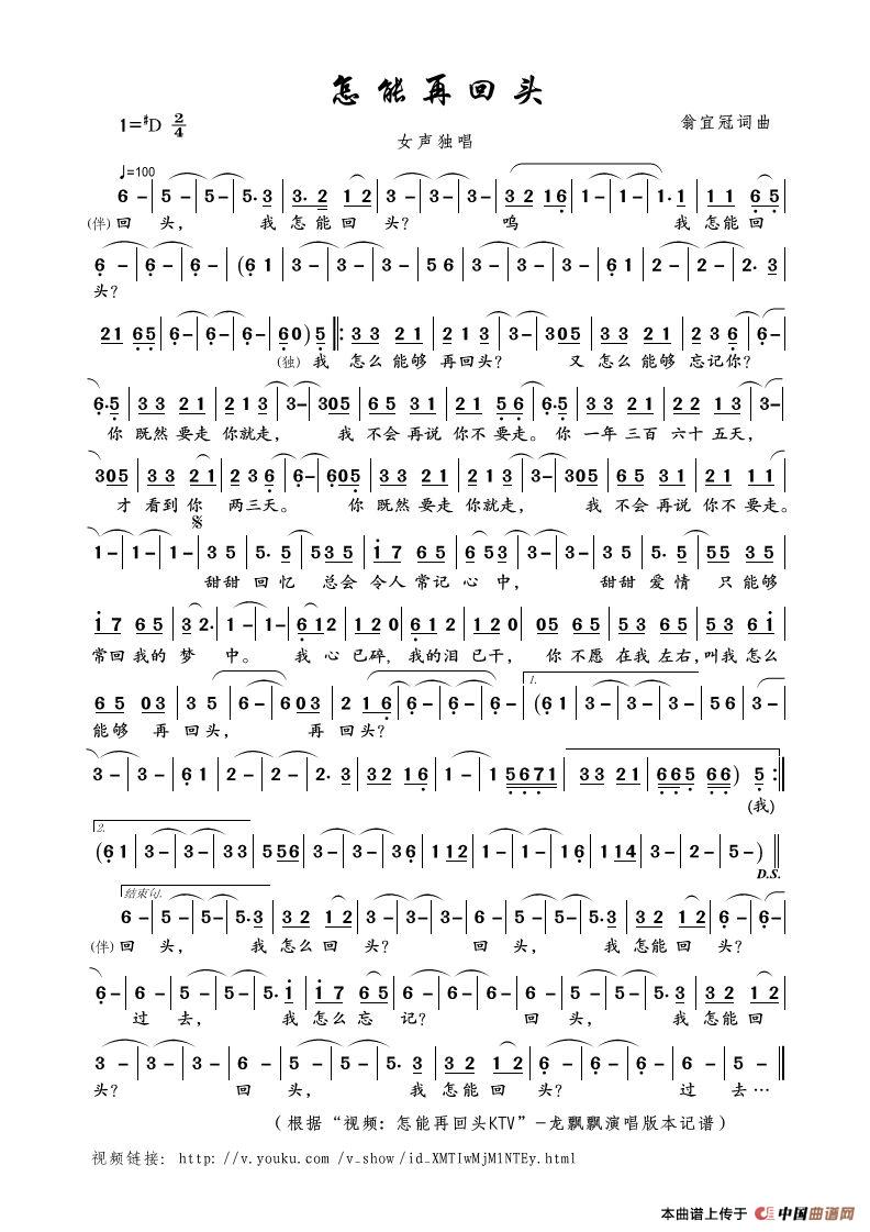 怎能再回头(翁宜冠词曲)相关五线谱