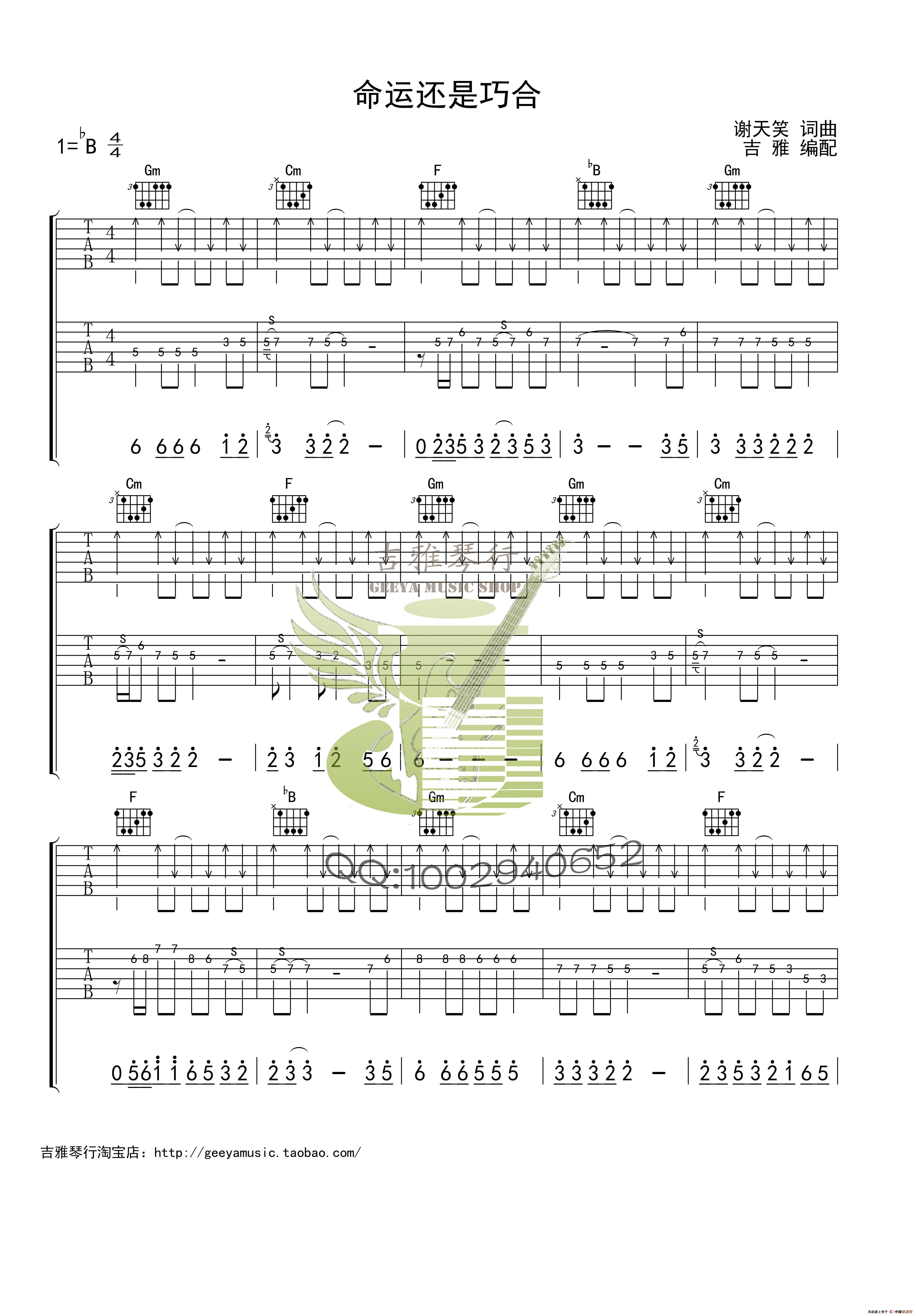 命运还是巧合(六线吉他谱)