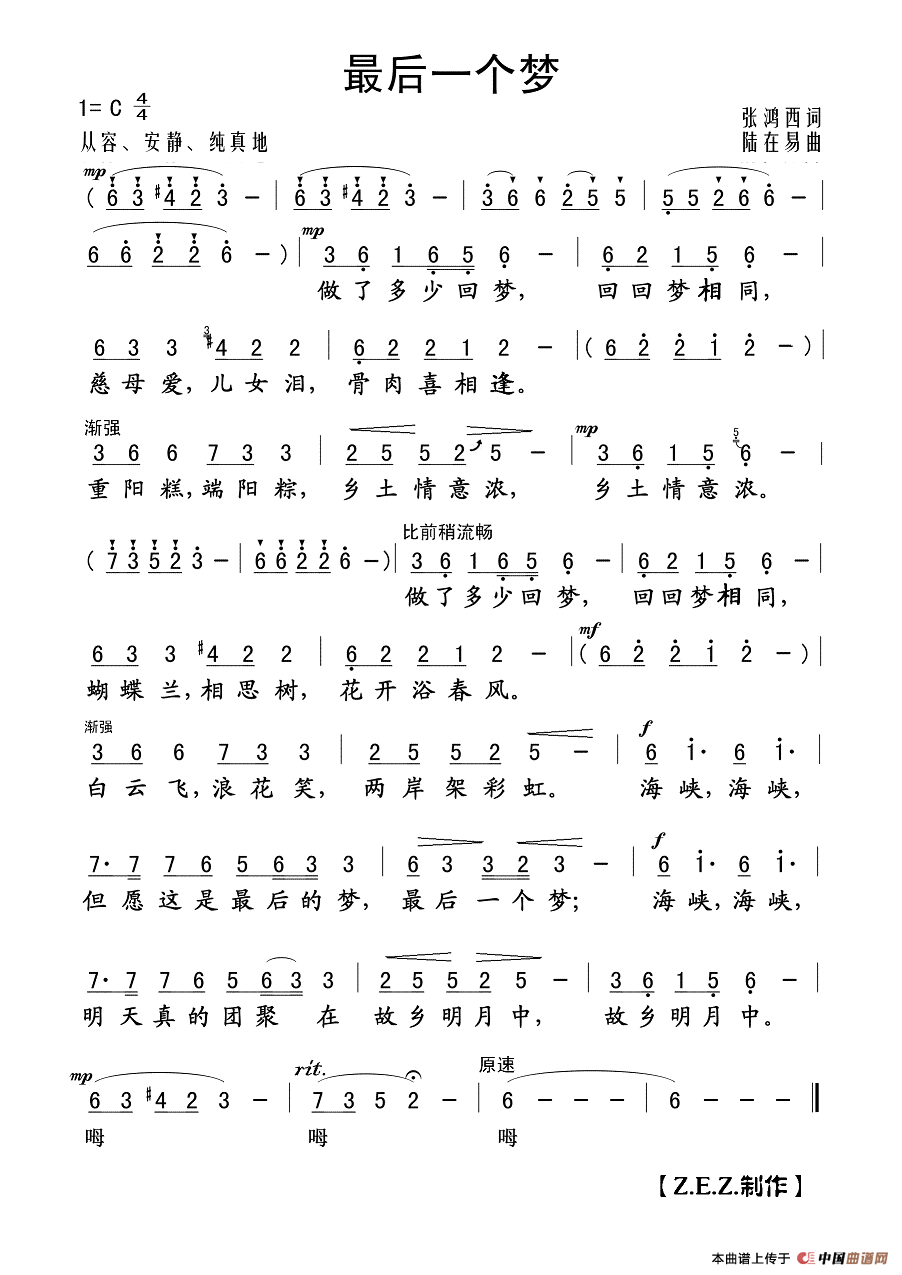 陆在易曲谱推荐葡萄园夜曲(孟昭辉制谱版)祖国,慈祥的母亲西湖春晓(线谱 根据贺绿汀原作改编)游子情思(混声合唱)我爱这土地(艾青词 陆在易曲)祖国,你是我心中永远的歌祖国,你是我心中永远的歌(正谱)祖国,慈祥的母亲雨后彩虹(女声合唱、正谱)中国,中国(大型电视系列片《横穿中国》主题歌)人生是一个海桥(于之词 陆在易曲)祖国慈祥的母亲盼(佚名词 陆在易曲、正谱)祖国,慈祥的母亲祖国,慈祥的母亲(五线谱)他们拥有太阳(电视连续剧《他们拥有太阳》主题歌)我爱这土地难忘杭州(正谱)桥(于之词 陆在易曲、正谱)