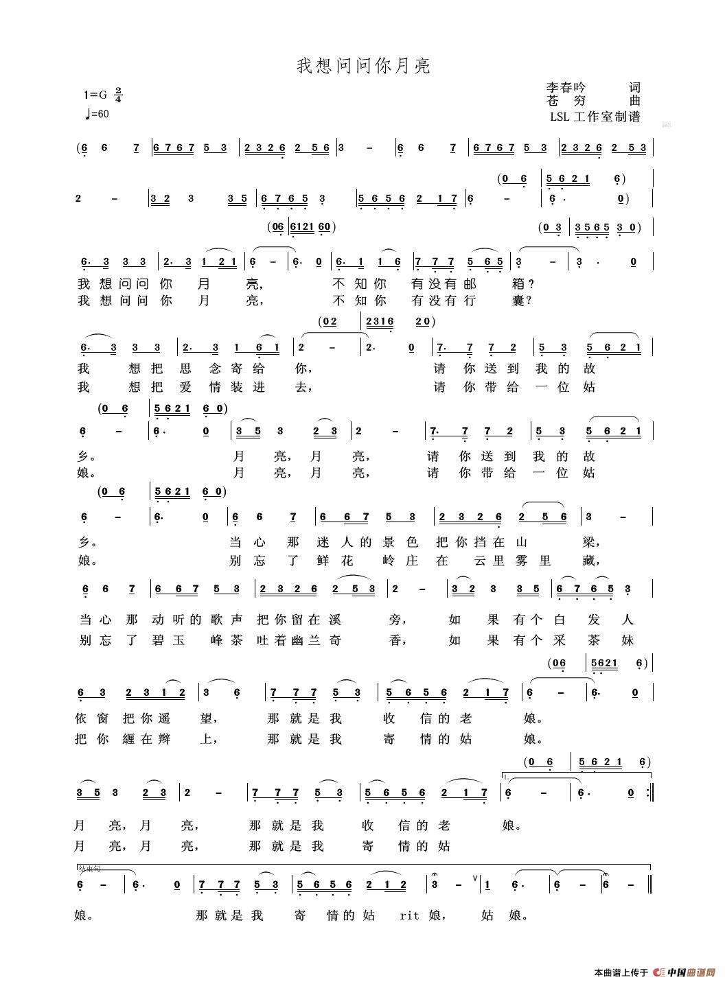 我想想问问你月亮相关五线谱