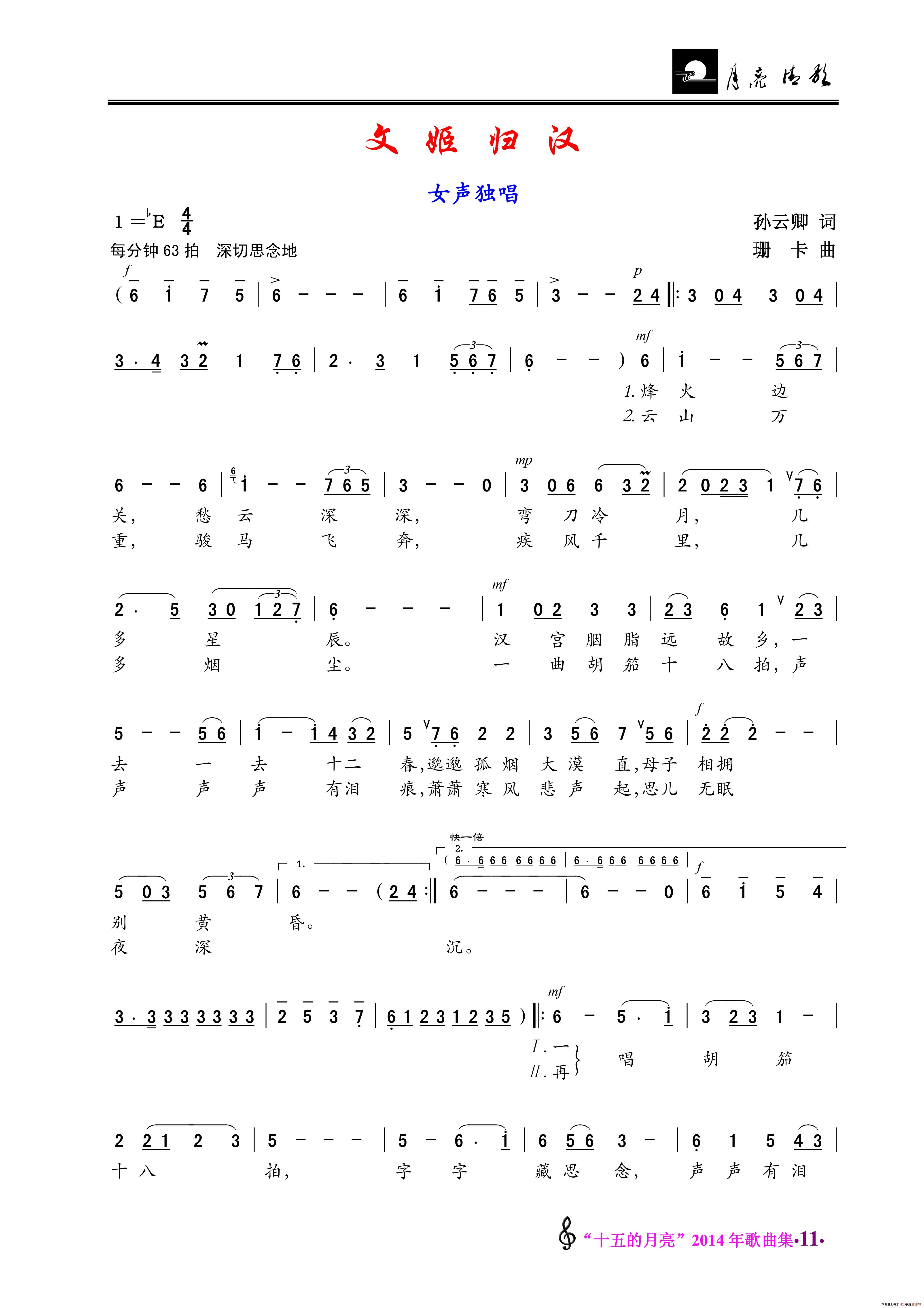 文姬归汉/端阳曲(女声独唱/女声小组唱)相关五线谱