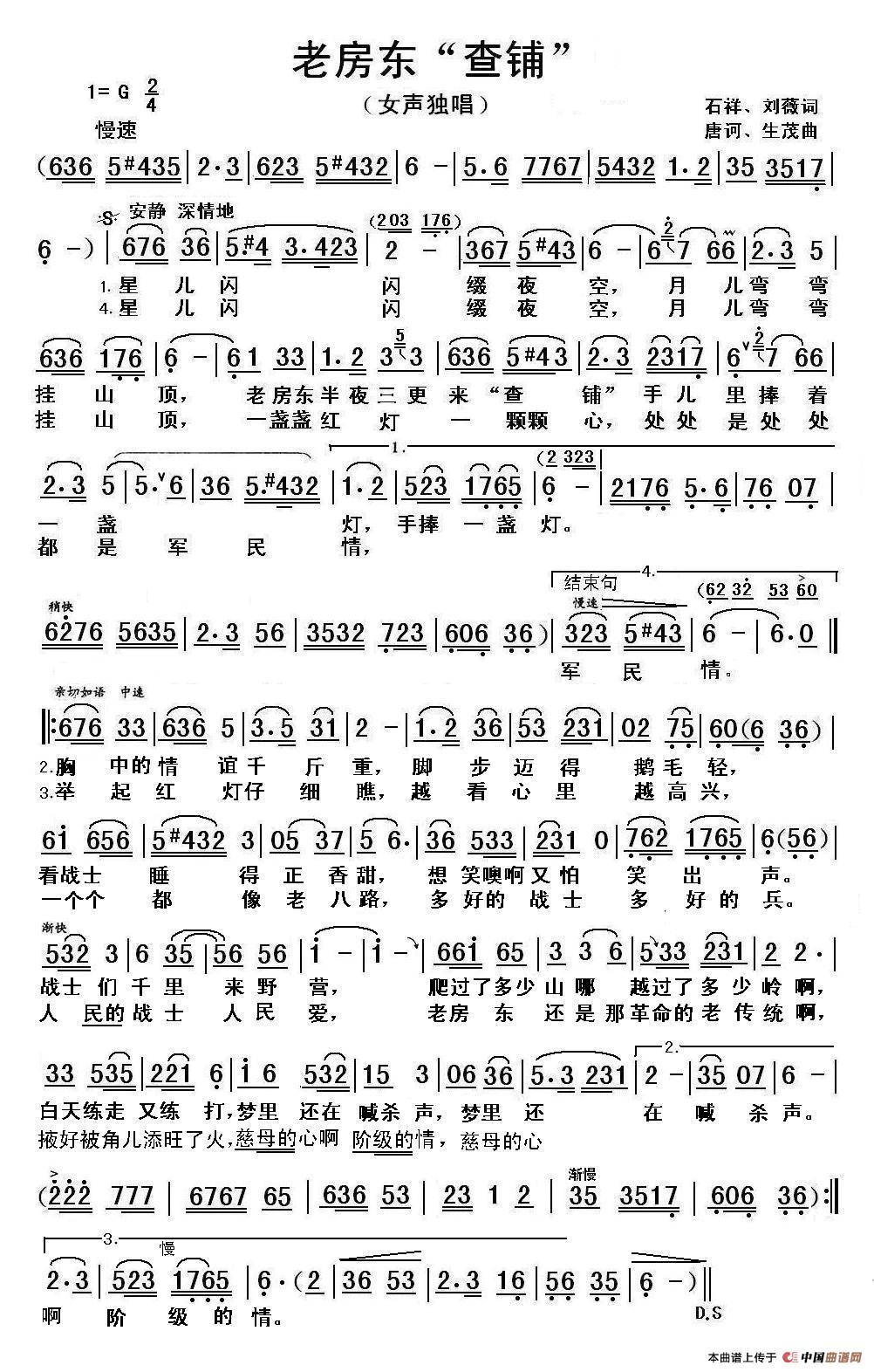 唐诃、生茂曲谱推荐老房东查铺毛主席啊,我们永远忠于您毛主席是各族人民心中的红太阳(金巍编配版)老房东查铺毛主席啊,我们永远忠于您雪白的哈达献给党老房东查铺军营生活套曲:4、投弹歌唱不尽的胜利歌深切怀念敬爱的周总理 (男女声二重唱)万岁!伟大的中国共产党深切怀念周总理(男女声二重唱)毛主席是各族人民心中的红太阳(混声合唱)打靶歌军营生活套曲:5、擦枪歌贫下中农最爱毛主席深切怀念周总理(线简谱对照版)