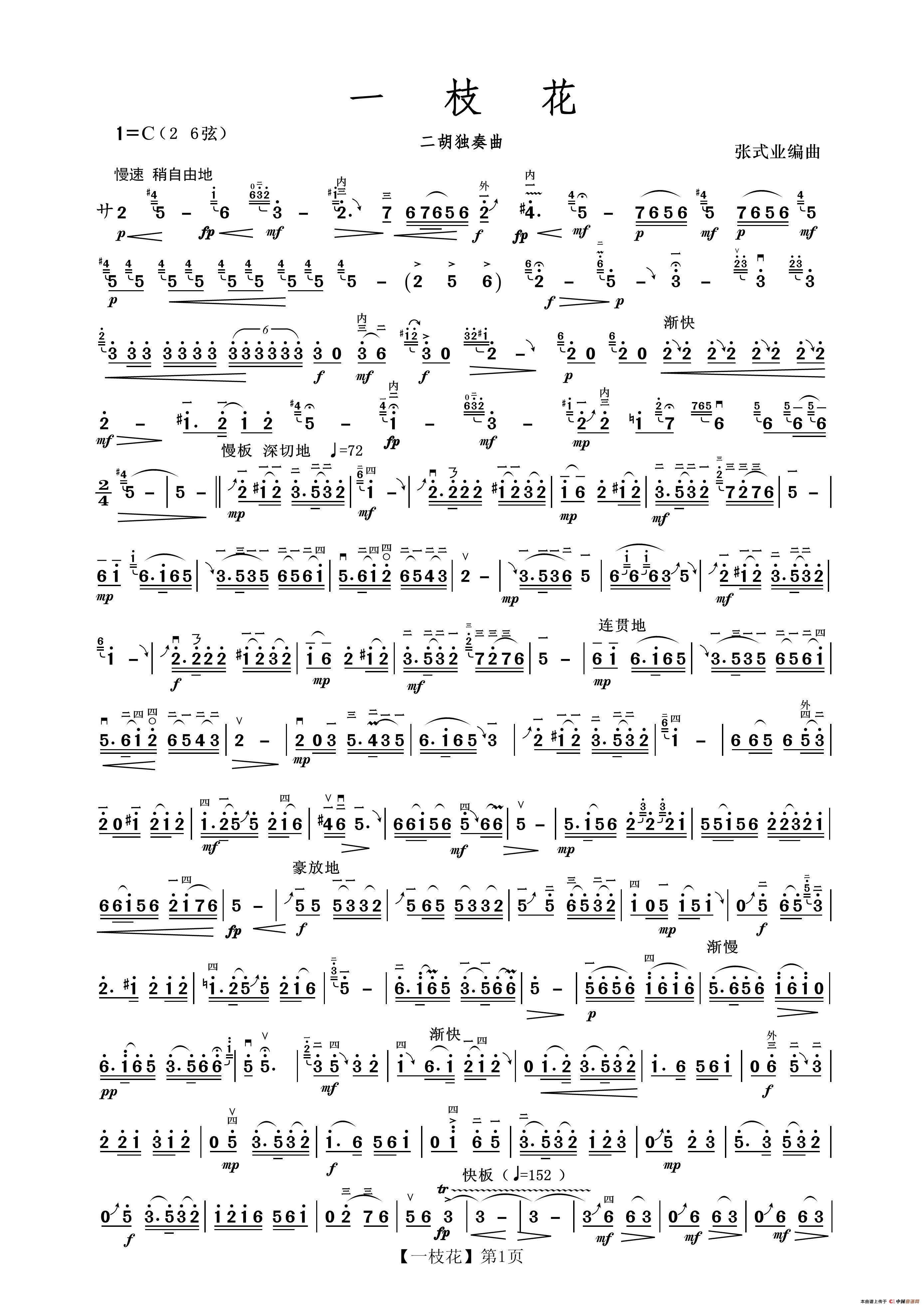 一枝花(二胡)相关五线谱