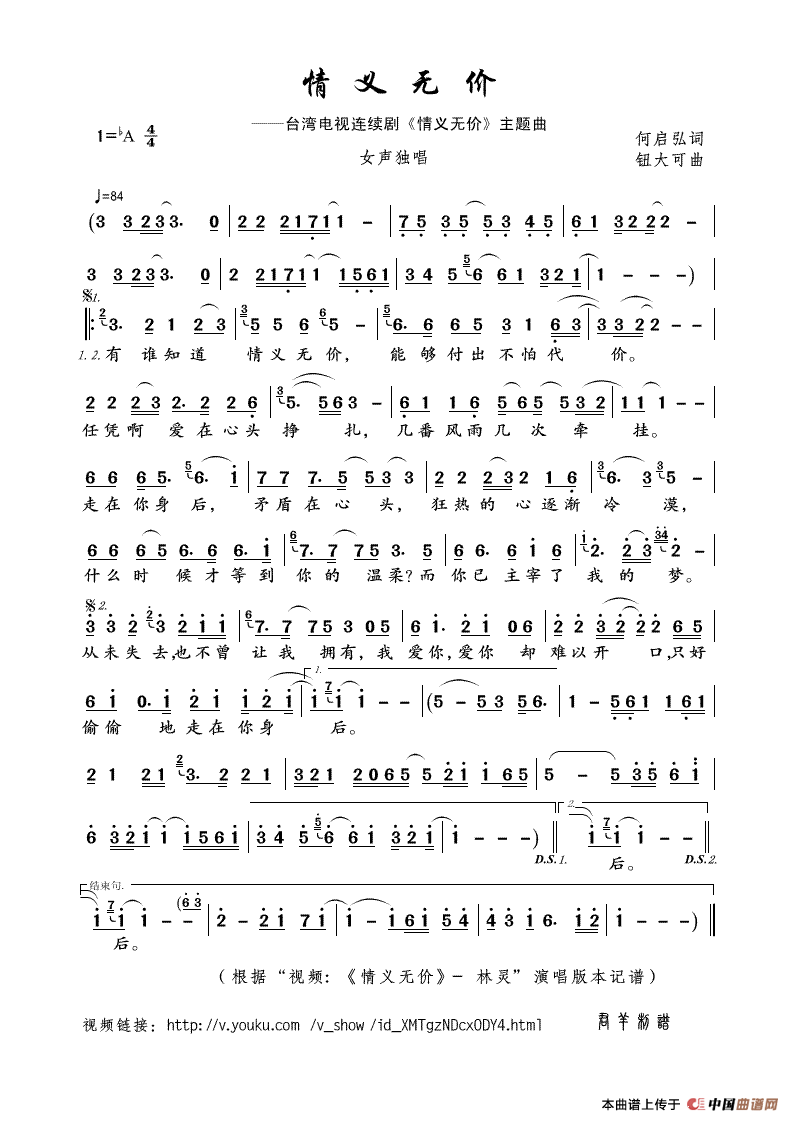 钮大可曲谱推荐苏芮演唱金曲:我没有错来自心海的消息余恨(陈玉贞词 钮大可曲)月光河苏芮演唱金曲:感情是否交流情义无价(台湾电视剧《情义无价》主题曲)苏芮演唱金曲:不能说冷井情深苏芮演唱金曲:重逢余恨心中的火胭脂情深(《胭脂扣》片尾曲)象风一样(电视剧《情义无价》插曲)北西南东让我醉别让我心碎情义无价(台湾电视连续剧《情义无价》主题歌)苏芮演唱金曲:沉默的母亲春去春又回(电视剧《春去春又回》主题曲)像风一样(台湾电视剧《情义无价》插曲)改变你