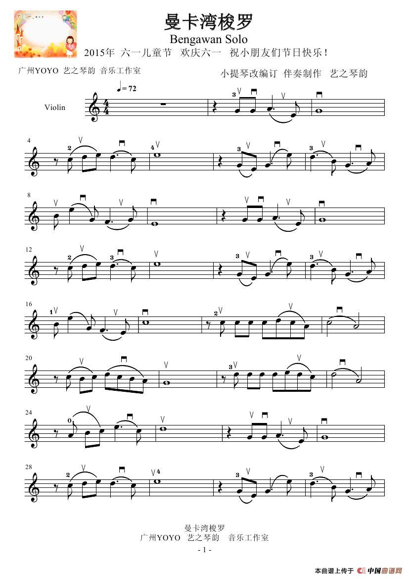 曼卡湾梭罗(小提琴谱 欢庆六一)