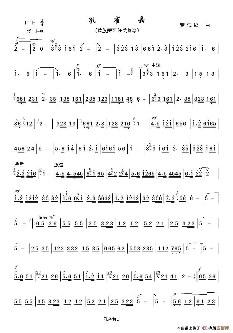 罗忠镕曲谱推荐