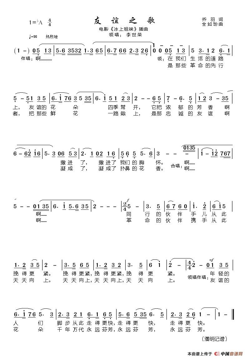 全如玢曲谱推荐青少年运动员之歌(故事影片《女跳水队员》主题歌)为祖国争光荣(电影(排球之花》插曲)万众一心奔向前(电影《艳阳天》主题曲)意中的人儿心灵美(电视剧《意中人》插曲)青少年运动员之歌(电影《女跳水队员》插曲)