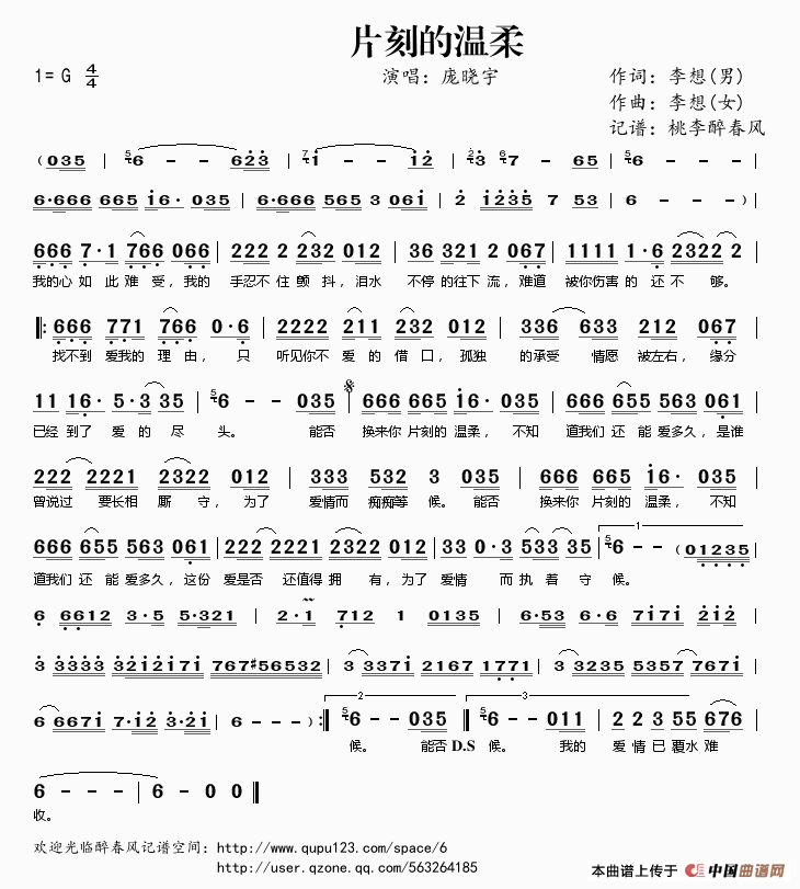 片刻的温柔相关五线谱