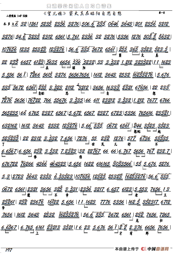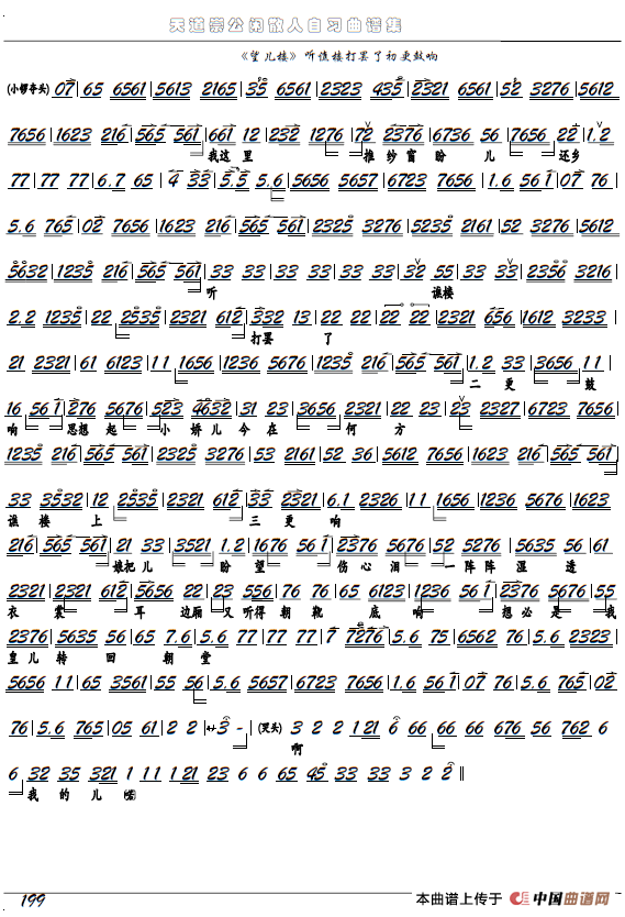 《望儿楼》窦太真、听谯楼(京剧选段、京胡谱)