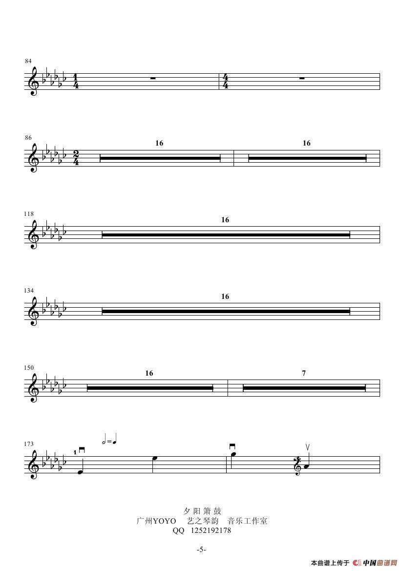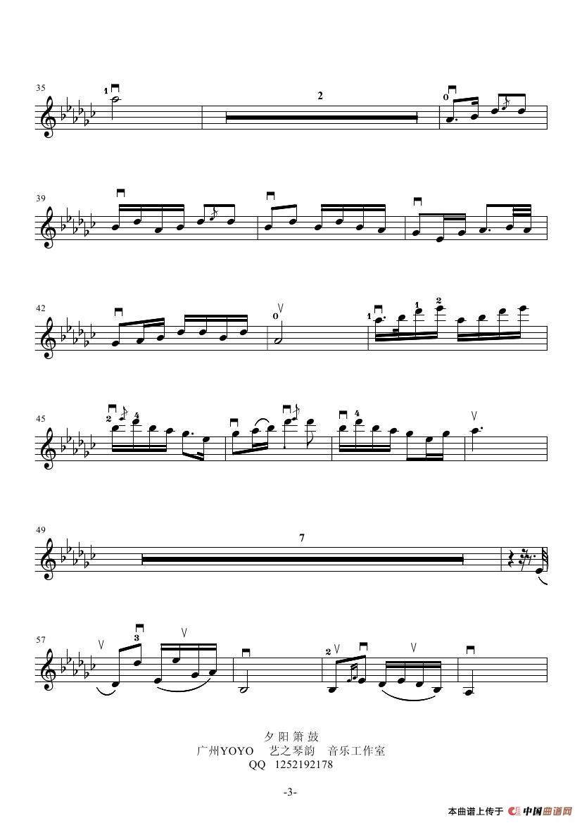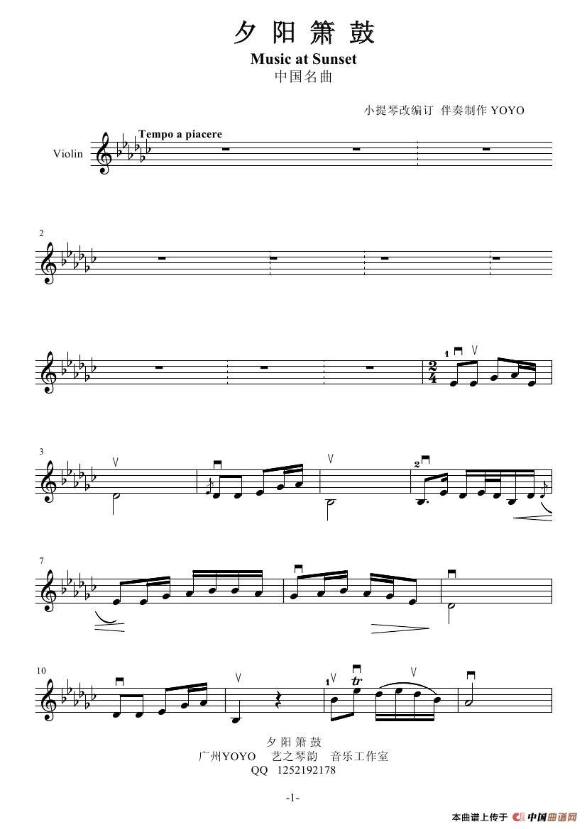 夕阳箫鼓 (小提琴谱)相关五线谱