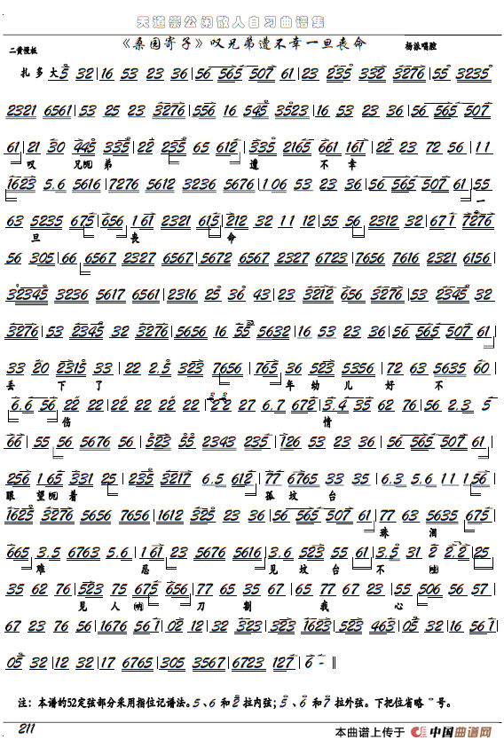 《桑园寄子》叹兄弟遭不幸一旦丧命(京剧选段、京胡谱)相关五线谱