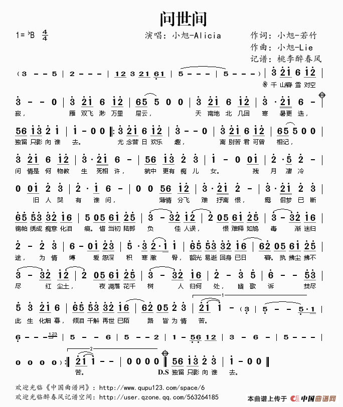 问世间(小旭-若竹词 小旭-Lie曲)相关五线谱
