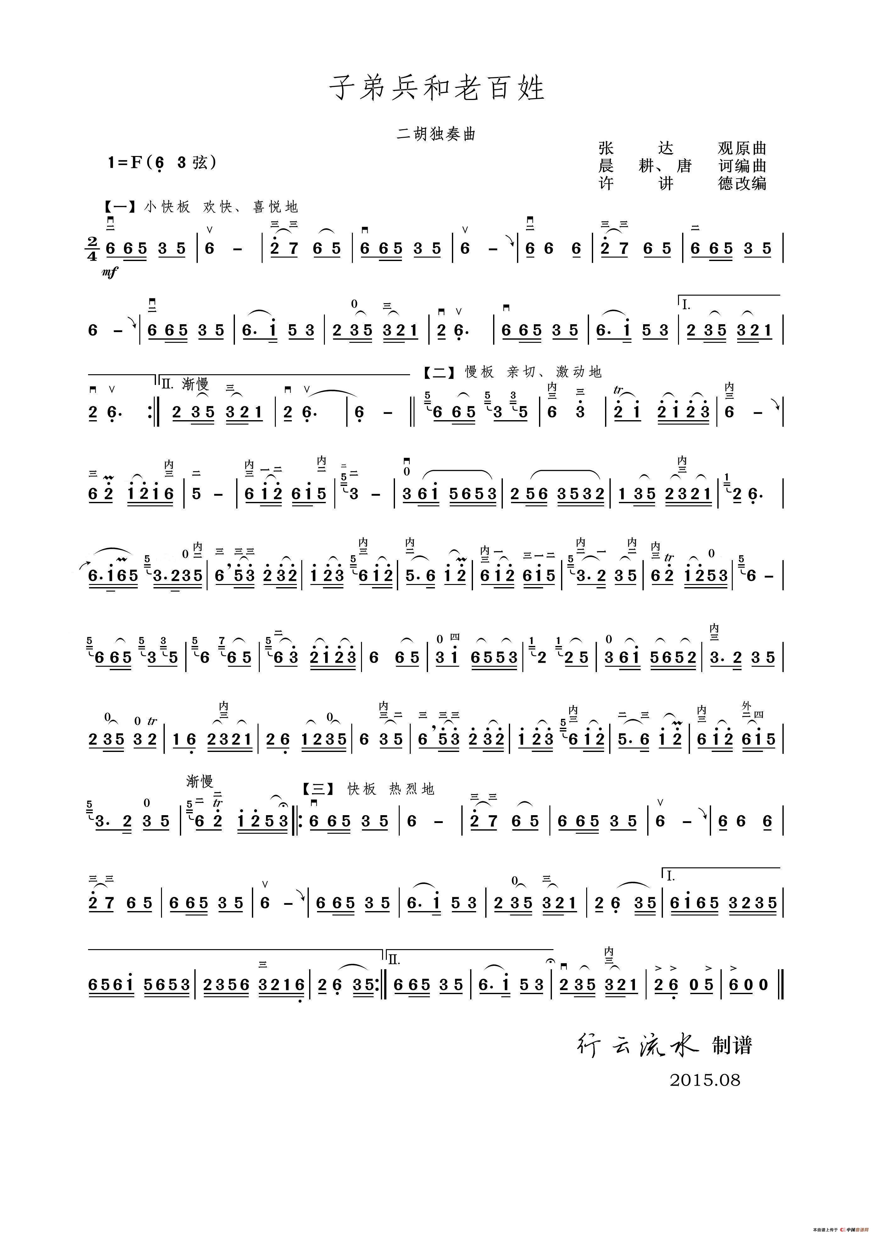 子弟兵和老百姓(扬琴伴奏二胡谱)