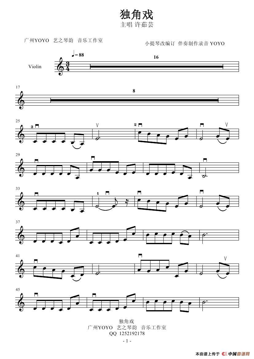 天涯歌女(电影《马路天使》插曲 、小提琴谱)