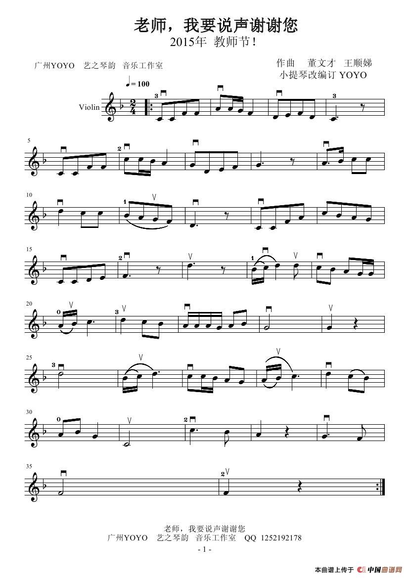 老师,我要说声谢谢您(小提琴谱)相关五线谱