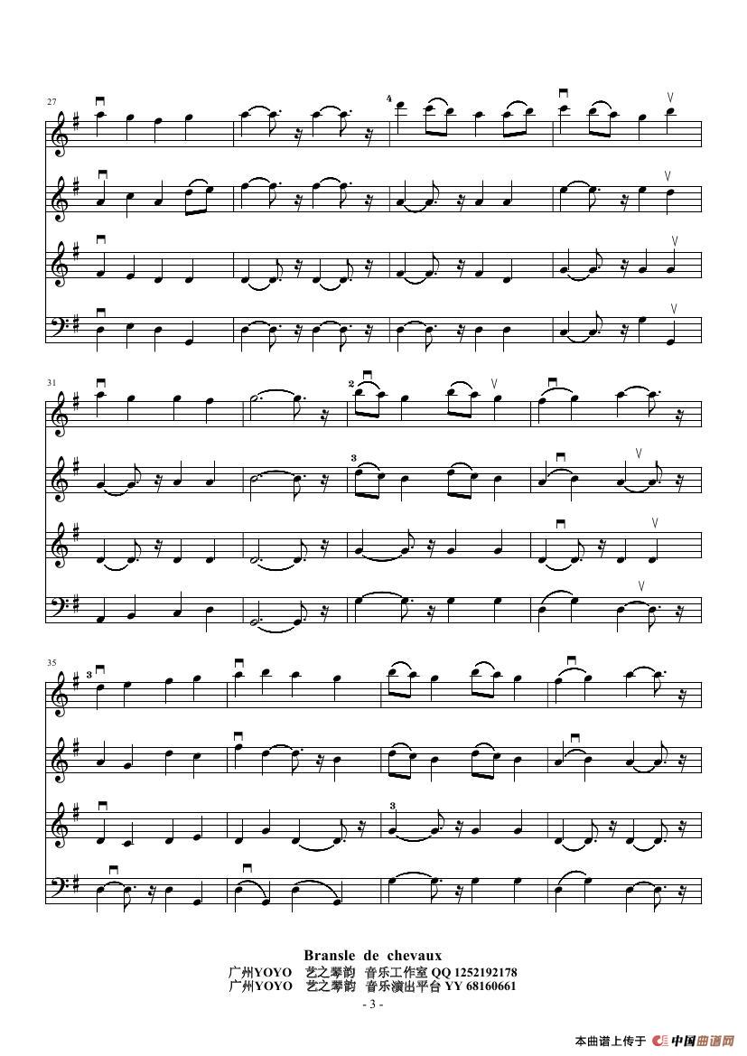 (弦乐四重奏)Bransle de chevaux(小提琴和大提琴)