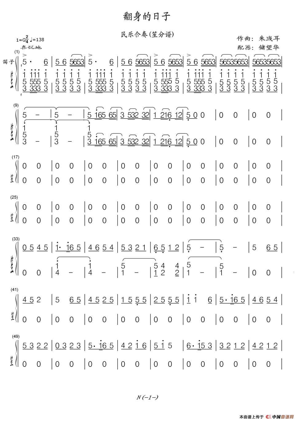 翻身的日子((民乐合奏(笙的分谱)