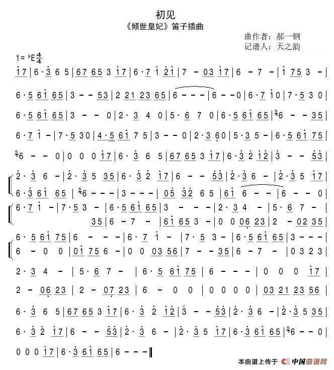 初见(《倾世皇妃》笛子插曲)相关五线谱