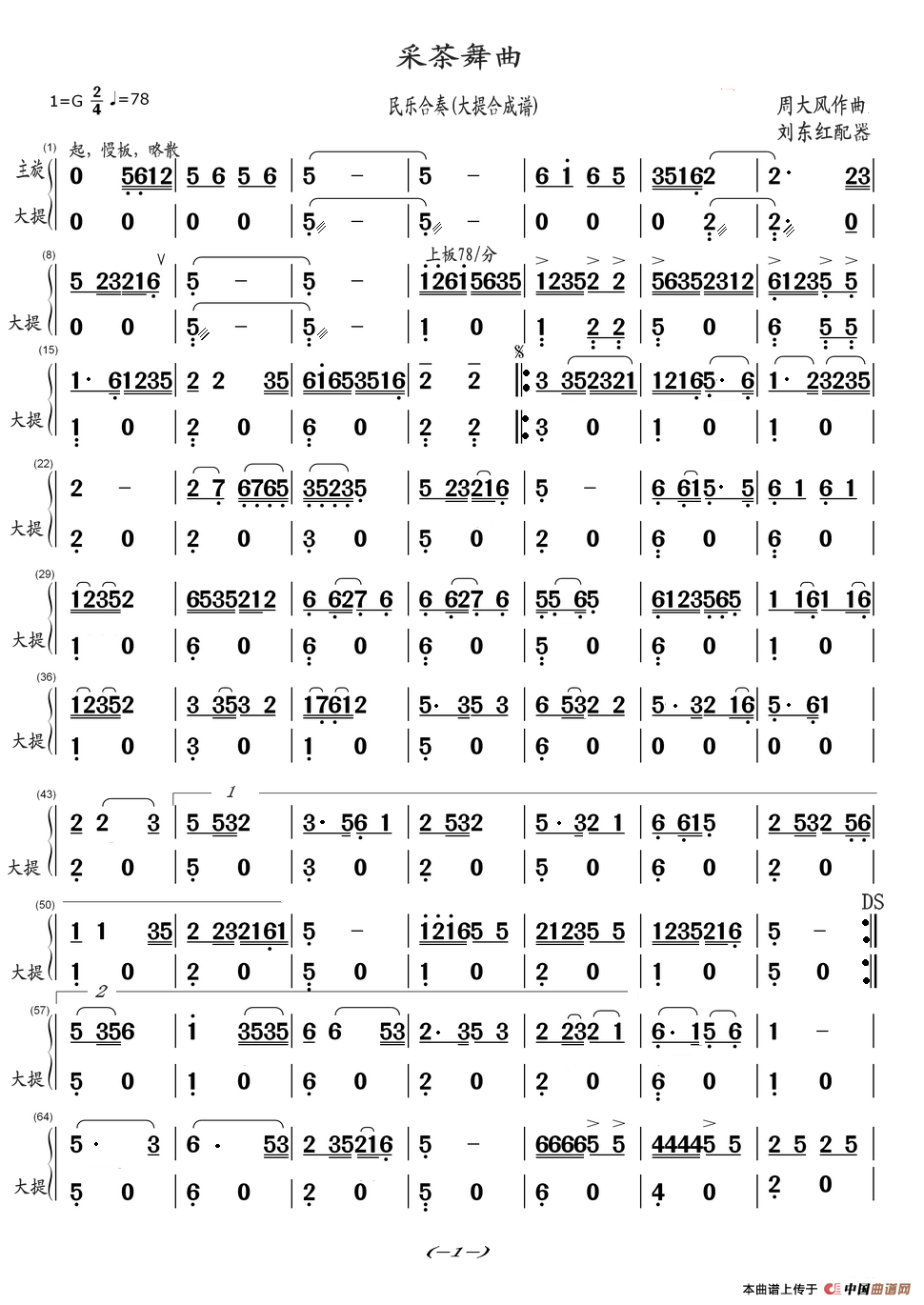 周大凤作曲,刘东红配器曲谱推荐