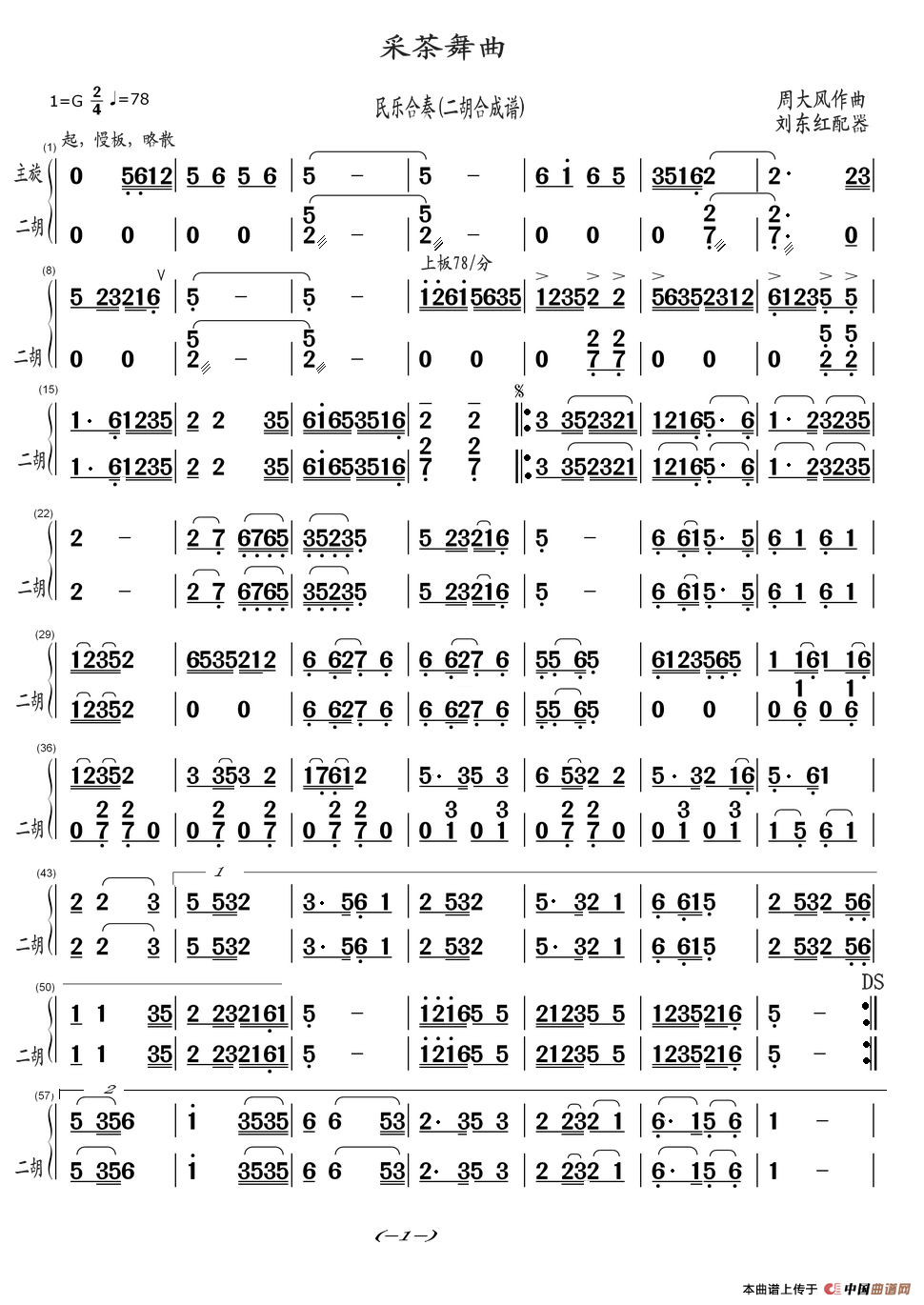 采茶舞曲(民乐合奏(二胡合成谱))相关五线谱