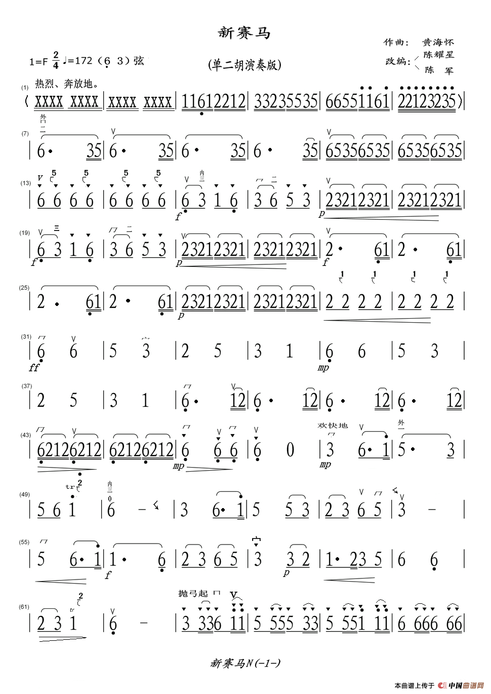 黔山抒怀(二胡独奏曲、五线谱版本)