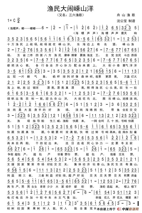 渔民大闹嵊山洋(舟山渔歌)相关五线谱