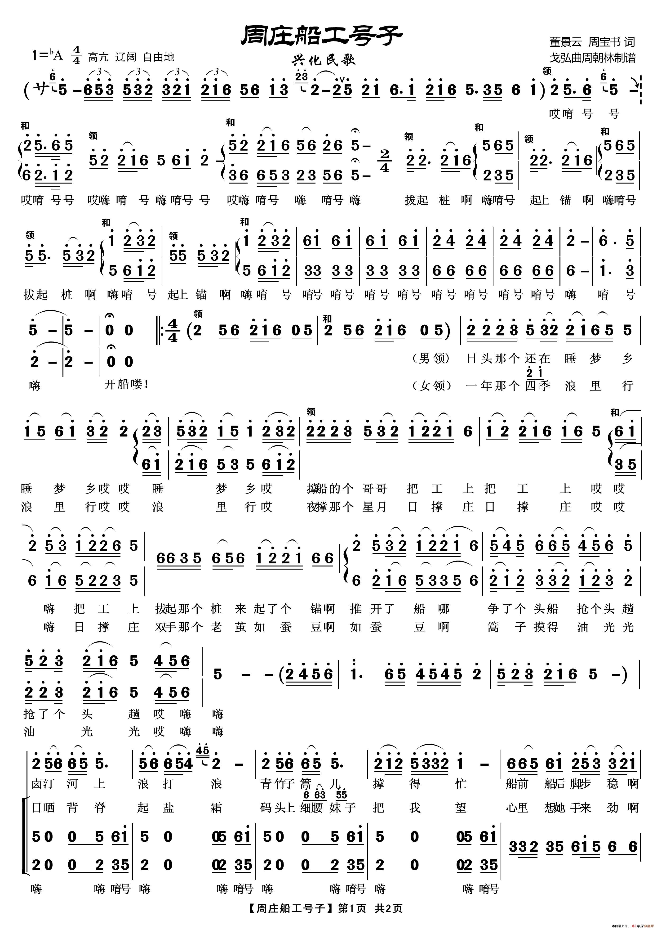 周庄船工号子(民歌)相关五线谱