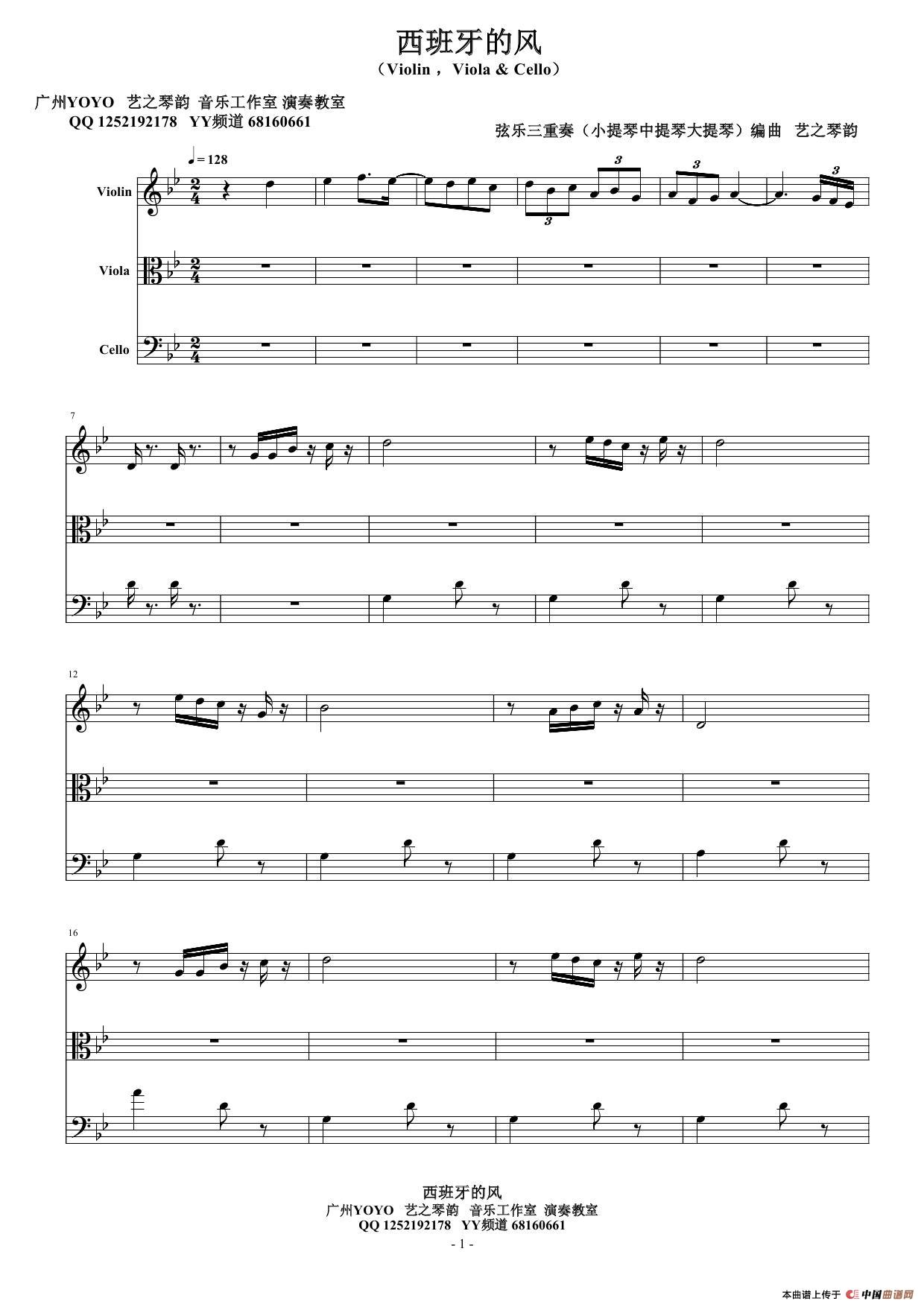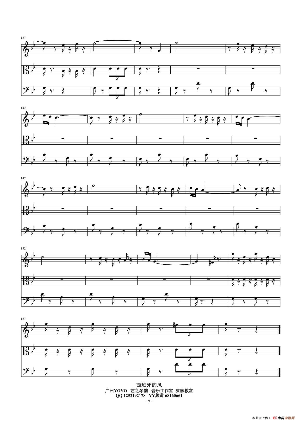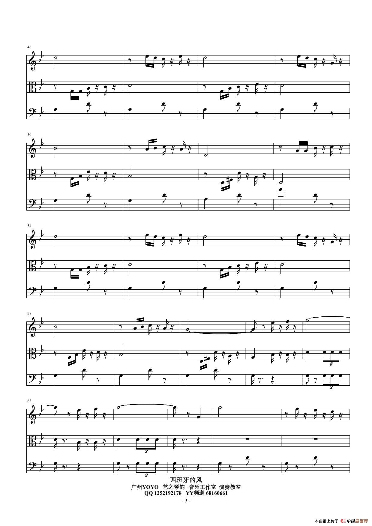 西班牙的风(小提琴中提琴大提琴)弦乐三重奏相关五线谱