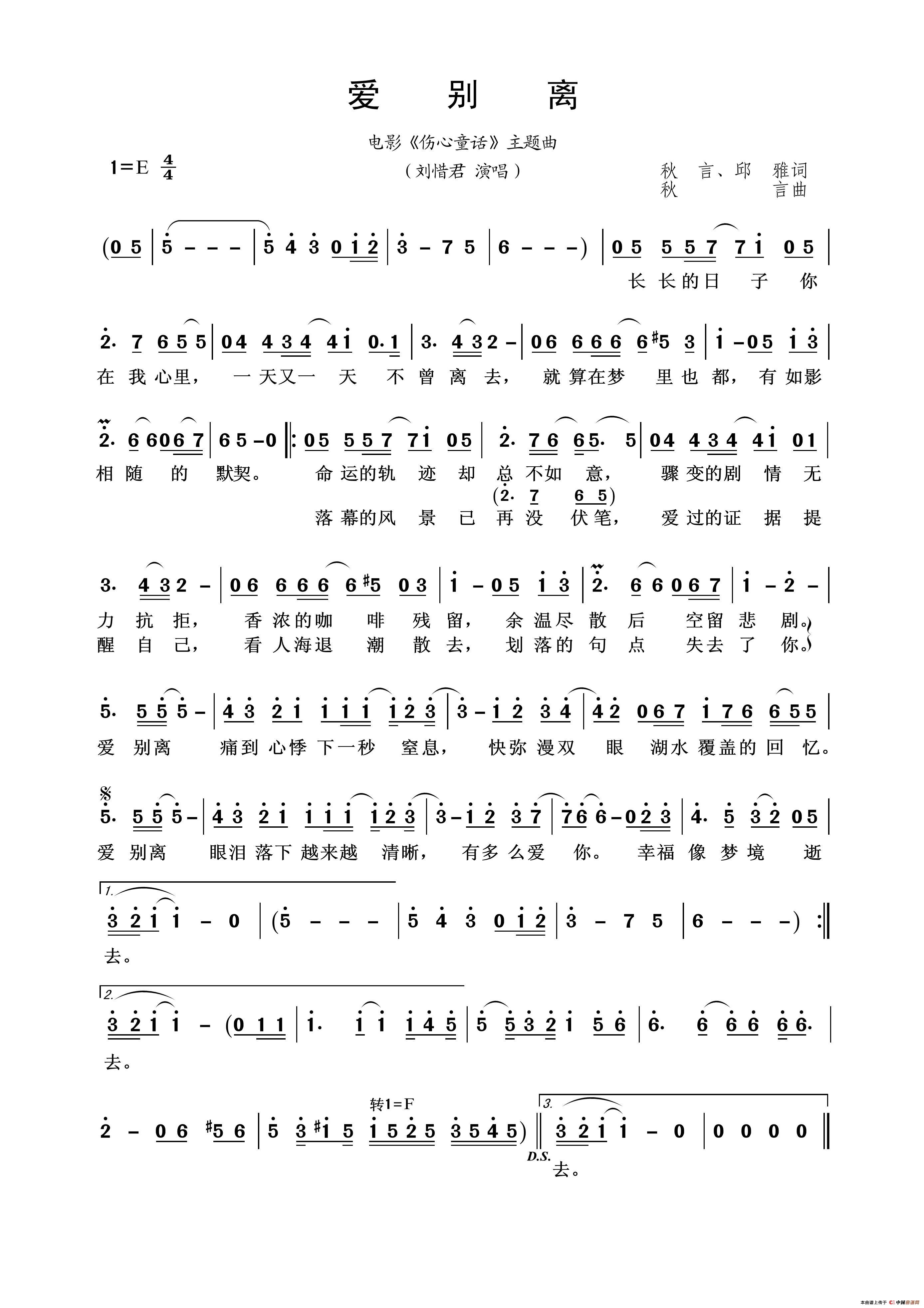 爱别离相关五线谱
