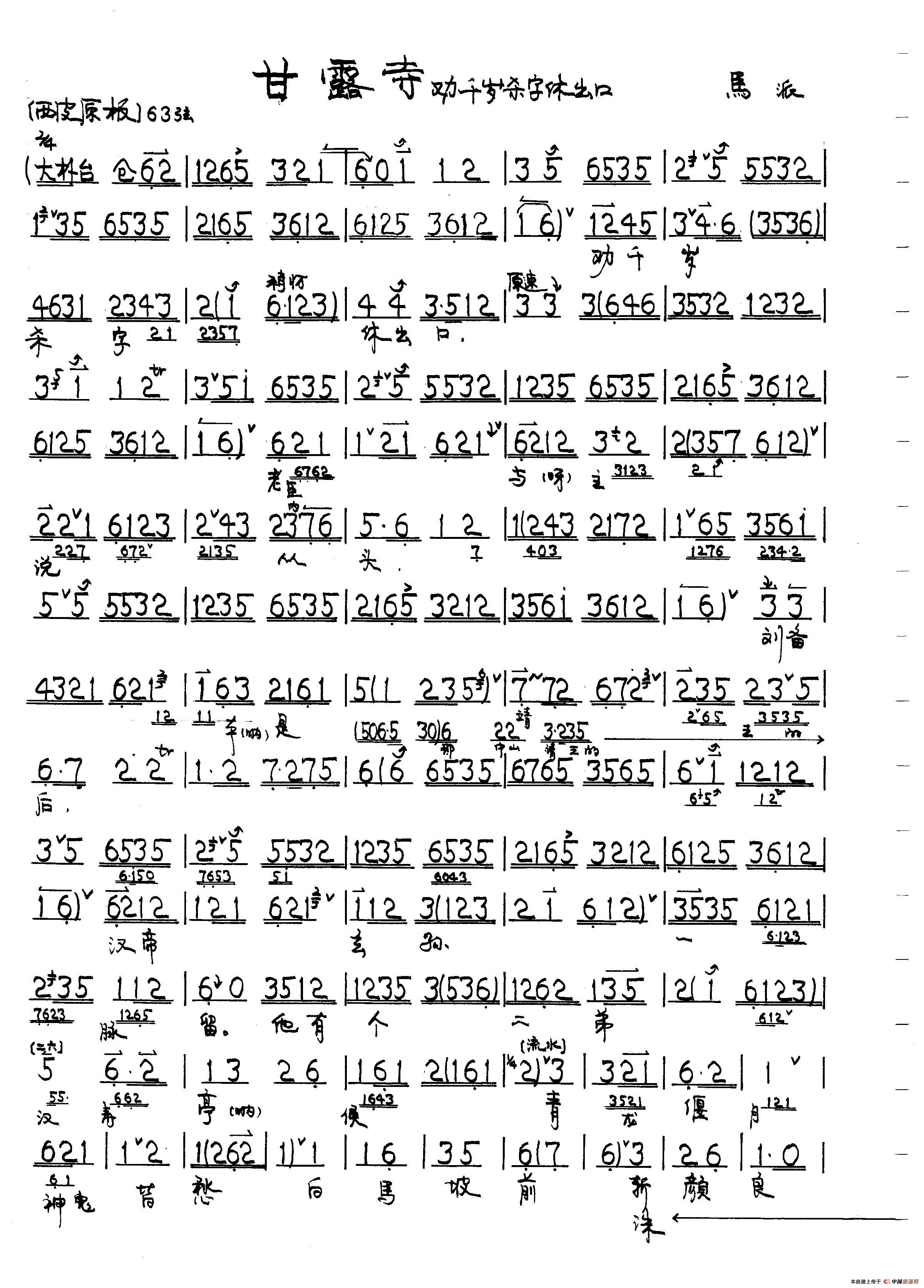失街亭·两国交锋龙虎斗(京胡伴奏谱)