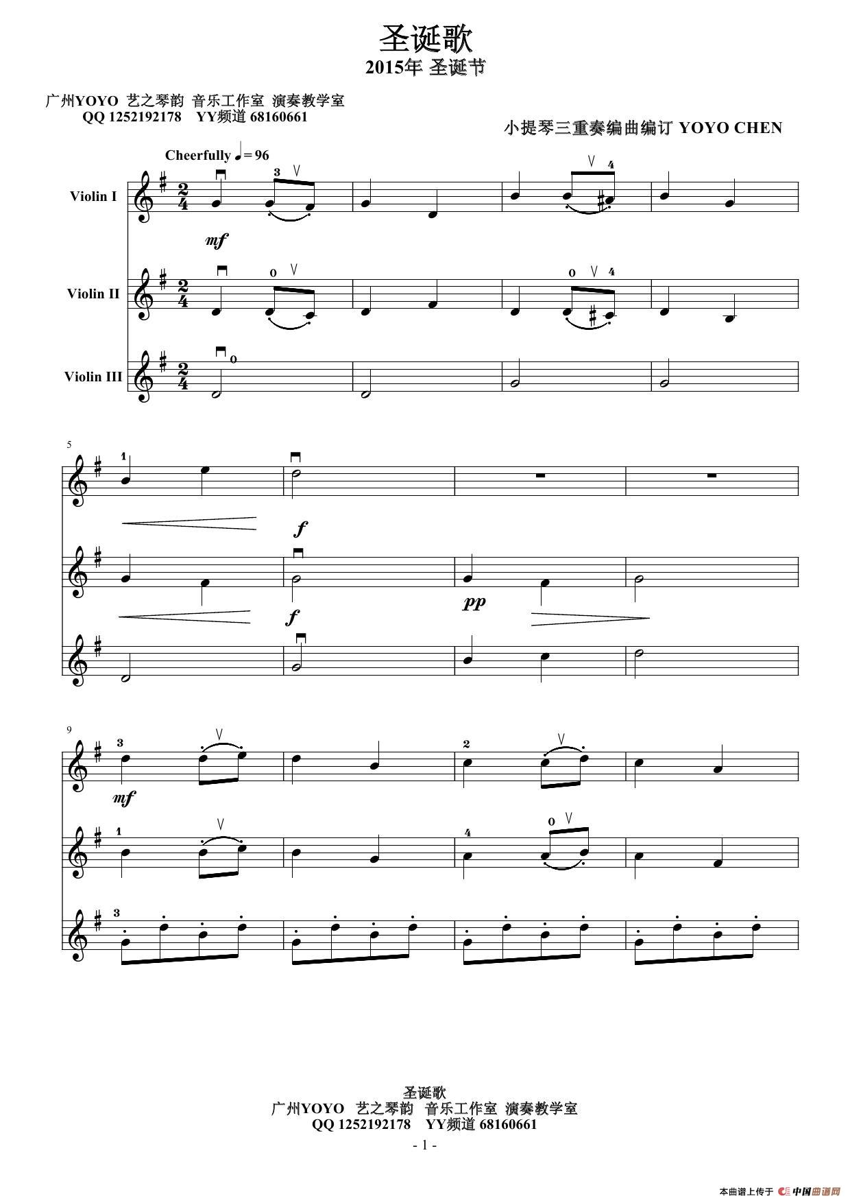 圣诞歌(小提琴三重奏)相关五线谱