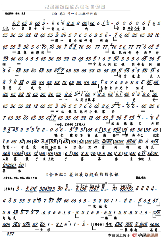 《金玉奴》花烛夜勾起我绵绵长恨(京剧选段,京胡谱)