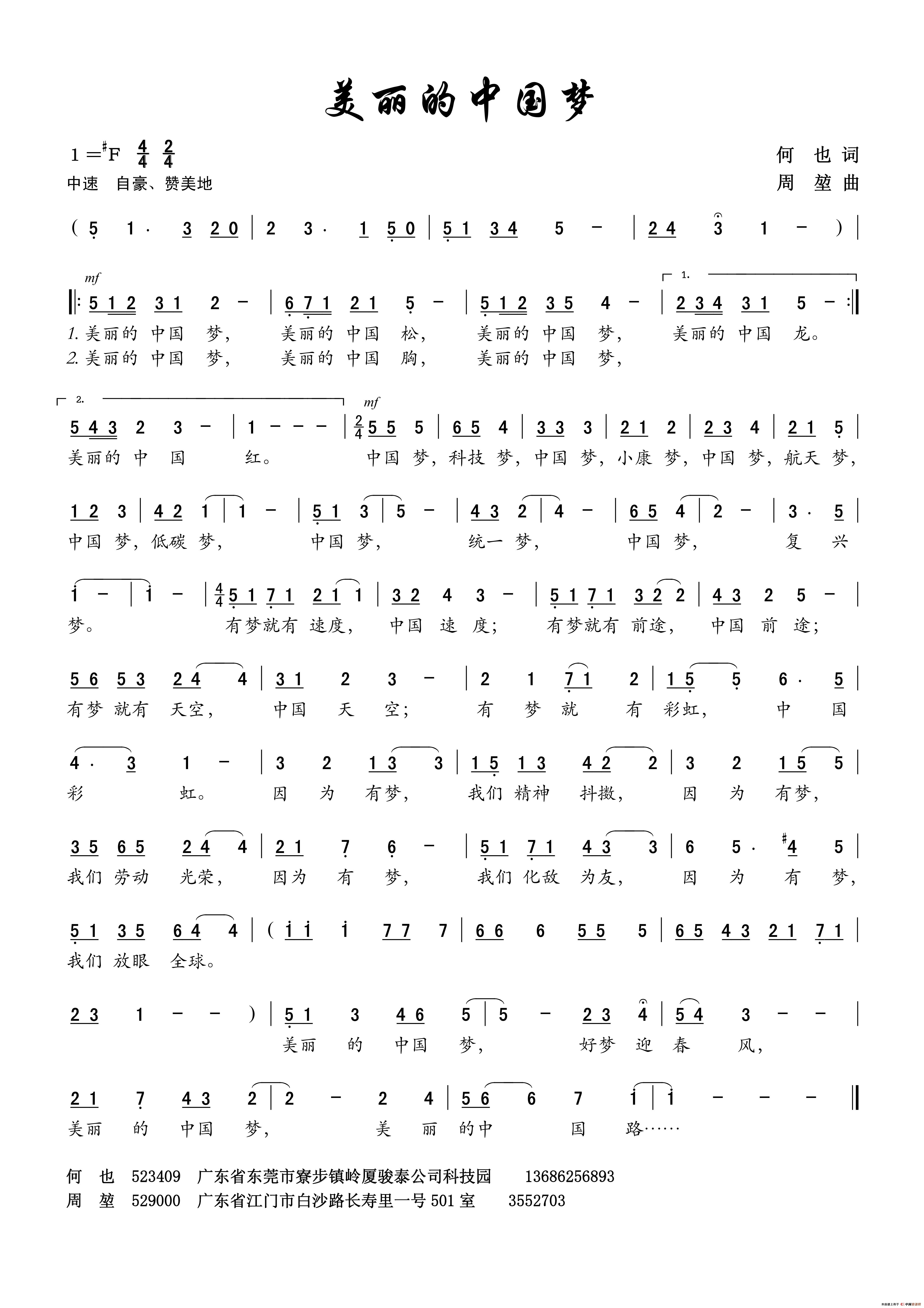 美丽的中国梦(何也词 周堃曲)